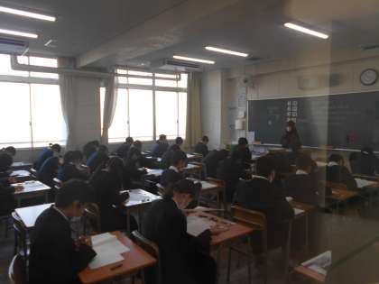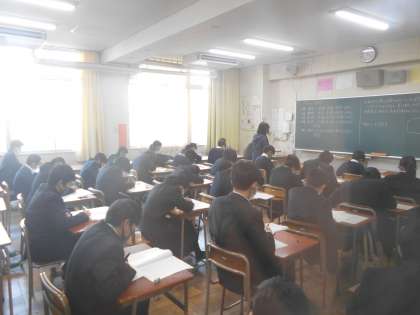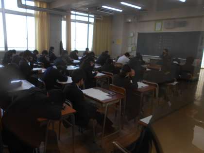 今日は、1・2年生対象に大阪府で一斉に行われているチャレンジテストを行っています。2年生は5教科のテストで、1年生は国語、数学、英語の3教科ですが、大阪市が独自で実施する社会と理科がプラスされた5教科です。