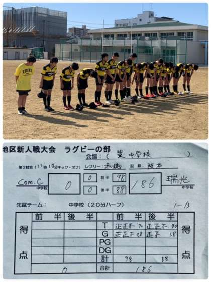 最終的には、前半14トライの98点、後半14トライの88点で、合計186−0の大勝となりました。
