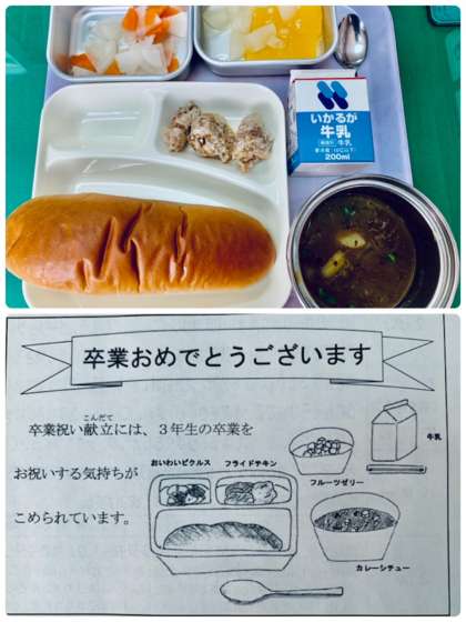 ◆「卒業祝い献立」の給食(近江牛のカレーシチュー)◆