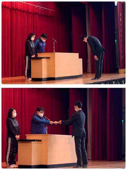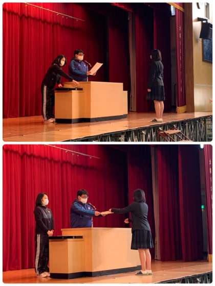 2組の代表生徒の授与、3組の読み上げと代表生徒の授与です。