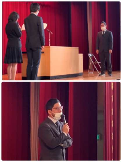 卒業生全員から3年生の先生方への感謝の気持ちを伝える儀式があり、3年間の思い出や苦労がたくさんある学年主任の樋口先生が、感極まりながら、卒業生たちへの思いを語る感動のひとときがありました。
