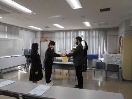 生徒会の会長と副会長の3名で東淀川区社会福祉協議会へ赤い羽根共同募金活動で集まった募金を届けにいきました。コロナの影響で緊急事態宣言が出されたため届けに行くのが、今日になりました。