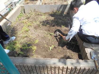 チャレンジ学級で菜園の整備のために除草作業をおこないました。