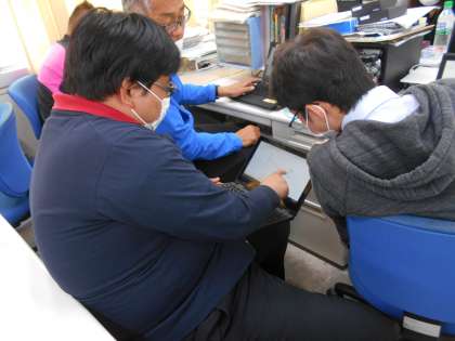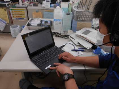 1年生の先生方がオンラインでの学活や学習の準備をしています。