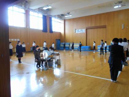 1年生は歯科検診を行いました。感染症対策で広い場所で換気を行い、生徒の間隔をあけて実施しています。生徒の皆さんがとても静かで、スムーズに検診できましたと歯科校医の先生からお褒めの言葉もいただきました。