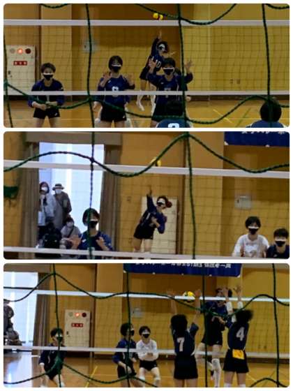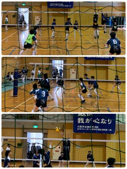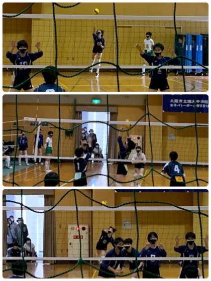 いきなり、お見合いの凡ミスで1点を先制されましたが、瑞光10番のサーブが揺れてとれず、まともなサーブカットが出来ないため、阪南中は混乱し、10−1となり、タイムアウト。