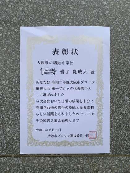 8月2日(月)に、なにわ公園グラウンドにて大阪市中学校軟式野球ブロック選抜試合が行われ、本校から3年生1名が1ブロック選抜チームの一員として参加しました。