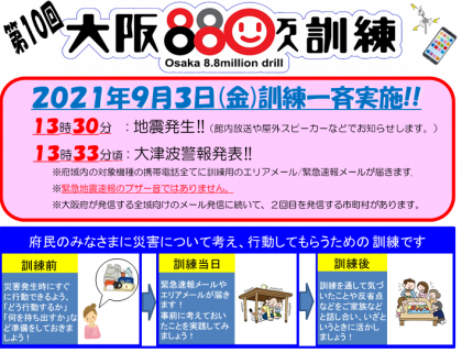 令和3年9月3日(金曜日)午後1時30分 第10回大阪880万人訓練を実施します