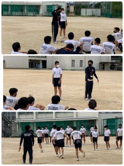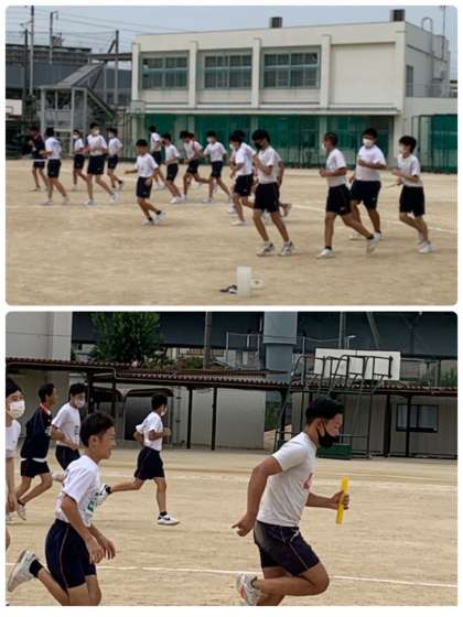 もう一人の教育実習生は、陸上のリレーについての授業を行いました。バトンパスを一生懸命に教えている姿に好感を持ちました。