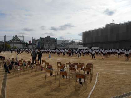 国歌演奏、大阪市歌演奏、校歌演奏の順です。