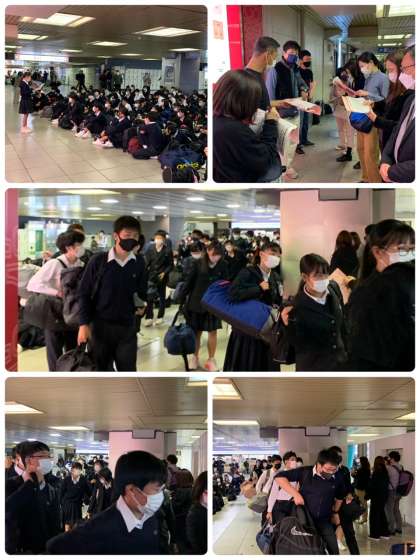 校長先生は瑞光中学校生たちに、鼻高々でホームへ向かいました。