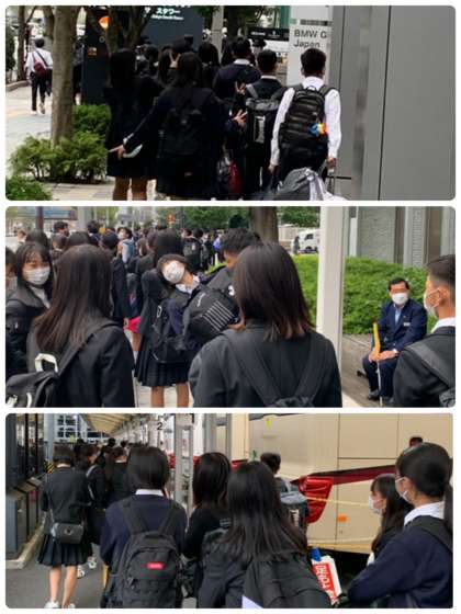 東京駅に到着し、バス乗り場に移動しました。東京ディズニーシーへ出発します。