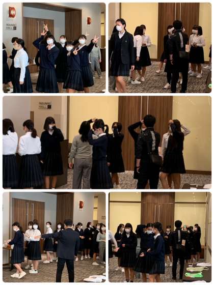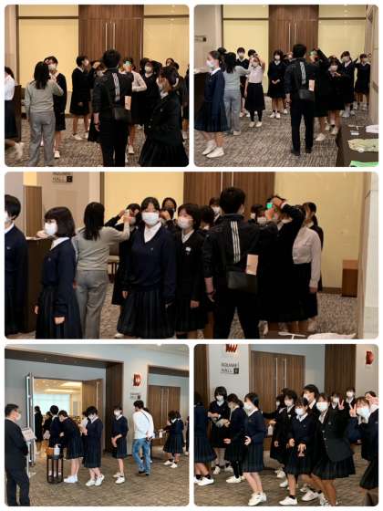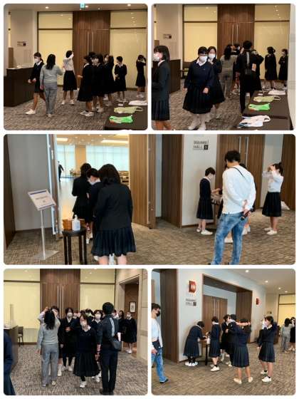 女子の検温、健康チェック、手指消毒、手袋着用の後は、朝食です。