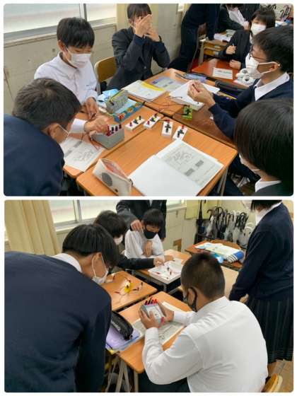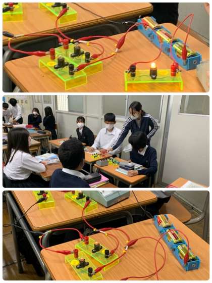 実験班に分かれて、電流の仮説検証実験を行なっていました。