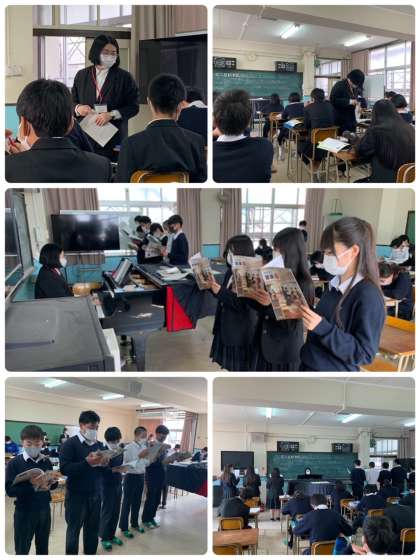 授業の後半では、3グループに分かれて歌いました。2年5組の生徒たちの真剣な授業態度が素晴らしかったです♪