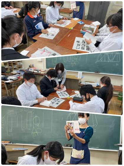 本校の司書である山本さんに来ていただき、本にブックカバーをかけました。