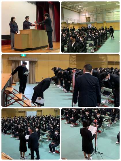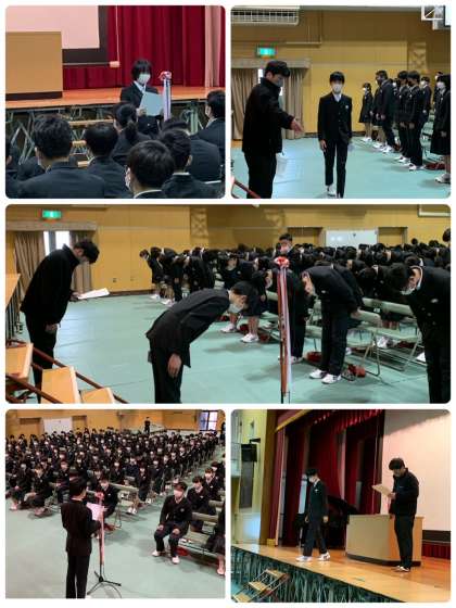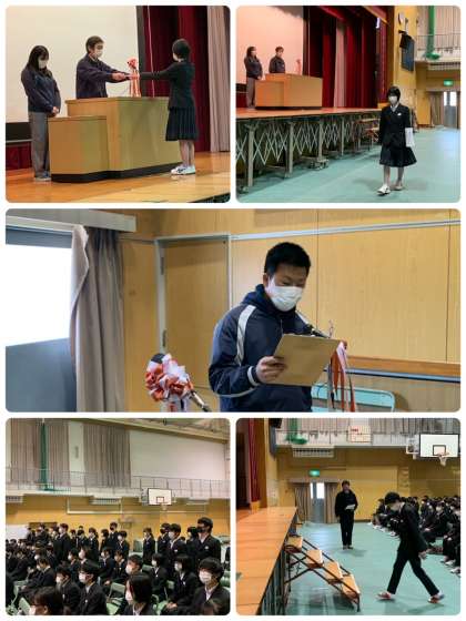 式次第通りに進行し、「在校生のお祝いのことば」「卒業生の喜びのことば」を本番さながらに行いました。