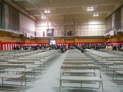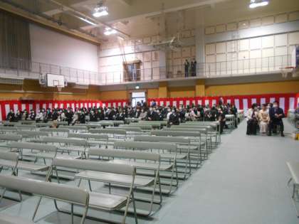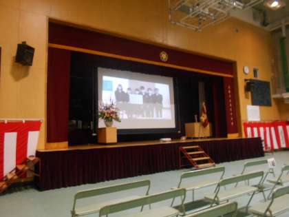 保護者の方も入場し、卒業生が作成したメッセージビデオを鑑賞しています。