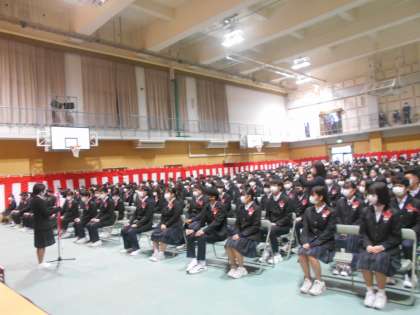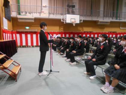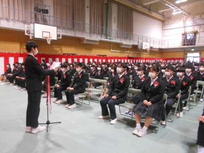 在校生「お祝いの言葉」は、在校生代表の西田さんから卒業生への感謝の気持ちを伝えてくれました。