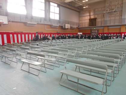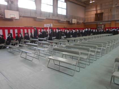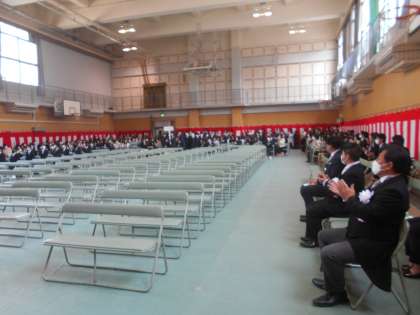 1年1組から担任の西山先生と入場で、新入生は少し緊張した表情です。