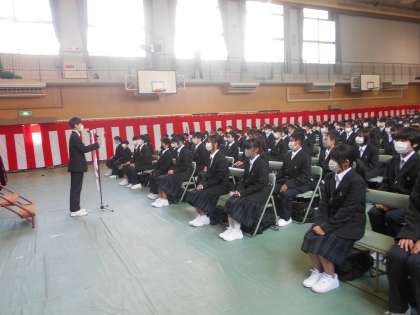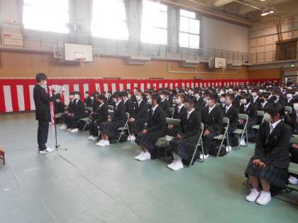 在校生代表では、松下くんから新入生にむけてのアドバイスとお祝いのことばを立派に述べてくれました。