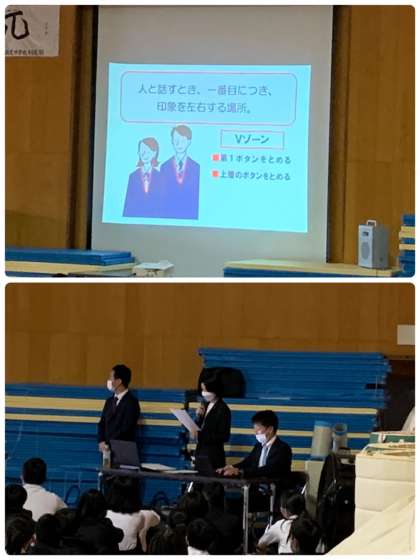 2年生は、3限目に格技室にて着こなしセミナーを行いました。