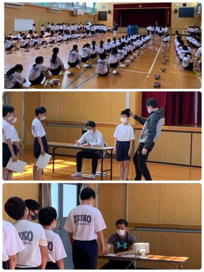 3限目に1年生は、体育館にて、身長・体重測定、理科室にて、視力検査を行いました。