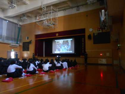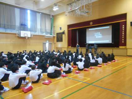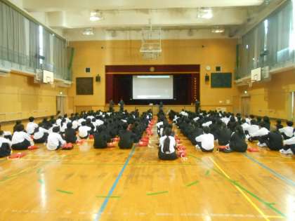 今日の6限目は、体育館で部活動紹介のビデオを見ました。