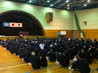青年の城に到着し、大ホールにて入所式を行いました。実行委員の代表より宿舎の方へのあいさつをしました。「〜精一杯がんばります!」と力強い立派なあいさつでした。