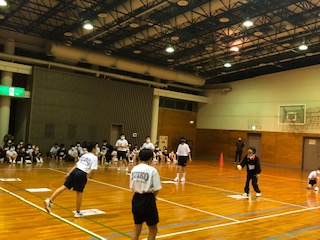 次は『ボールキャッチゲーム』です。8メートルほど離れた距離からソフトテニスのボールを相手に投げます。それを相手は紙コップでキャッチ出来たら成功です。