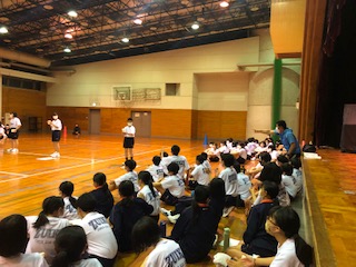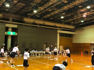 まず宇野先生と木戸先生が見本をみせてくださりましたが、これが何と全球成功。さらに遠く離れてもキャッチ成功しました!簡単なのかな?と思ったら、とんでもありませんでした。なかなか成功しません。キャッチできたら大歓声です。担任の先生も熱が入って応援していました。果たして一番多くキャッチできたのは何組だったでしょうか?