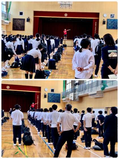 本日5月27日(金)、明後日からの一泊移住を控えている2年生は、5・6限目に体育館にて、事前指導を行いました。