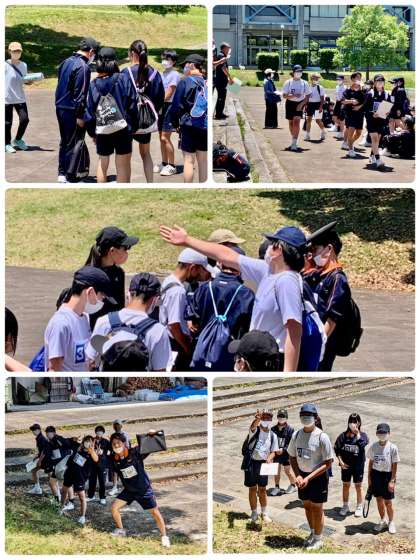 オリエンテーリングの説明の後は、各クラス各班ごとに、ルート?〜?に分かれて、3分ごとに出発しました。
