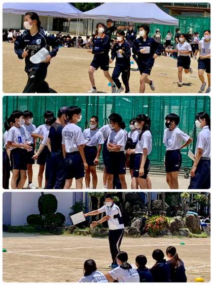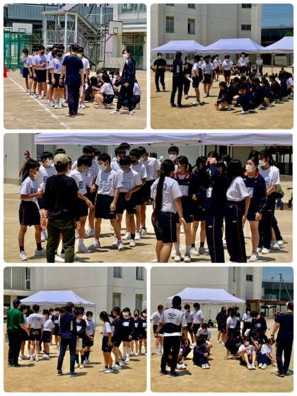 2年生たちは運動場に集合後、全体的な動きの説明を聞き、生徒席から順に、諸注意を受けながら、招集・退場の練習、確認を行いました。