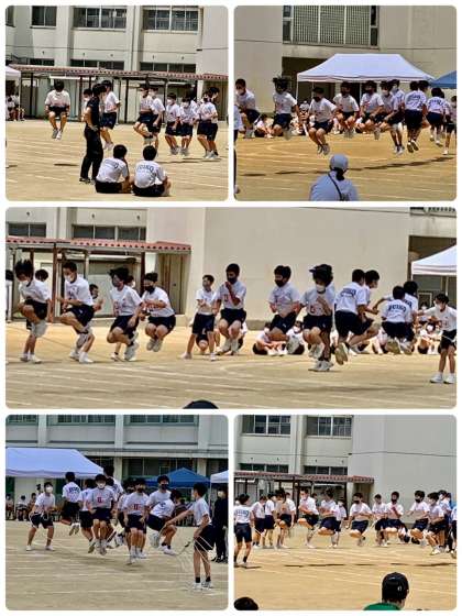 男女混合スウェーデンリレーに続いて、クラス対抗の大縄跳びです。