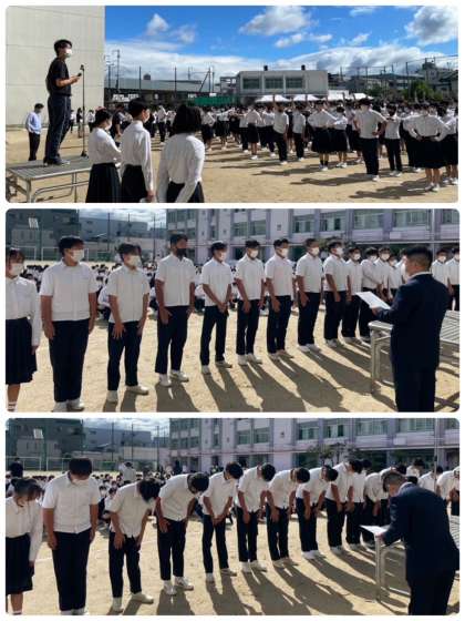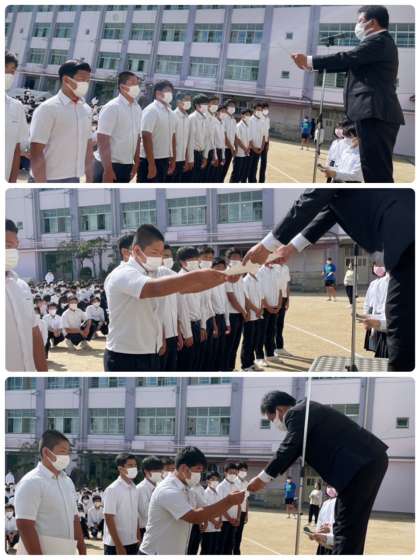 去る6月7日(火)の全校集会では、大阪市春季大会にて第3位になった、ラグビー部の表彰が行われました。