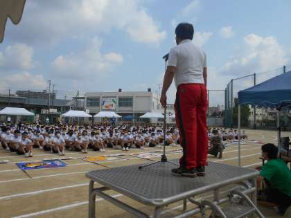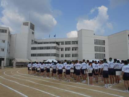 今日は、生徒たちの頑張っている姿を保護者の皆さんにみてもらう絶好の機会となります。熱中症に注意して、適宜マスクを外して競技を行います。