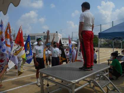 選手宣誓!!  生徒全員が力を合わせて大成功な体育大会にしてください。