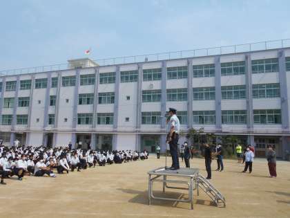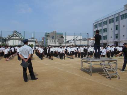 生徒は、教頭先生の放送ですみやかにグランドに避難を開始し、整列していました。