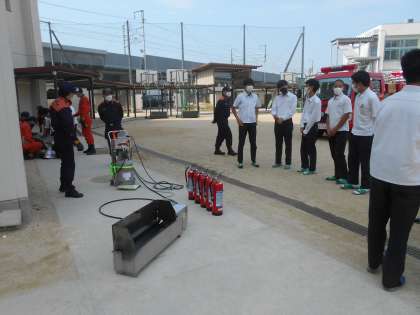 東淀川消防署の消防隊の方々に来ていただき、ご指導をいただきました。