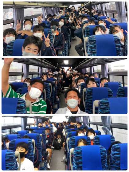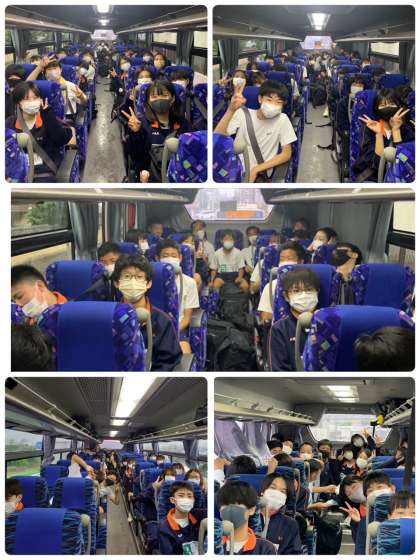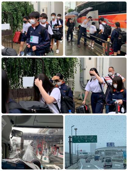 全員がバスに乗車し、出発しました。この写真を編集して高速道路に入る頃は、本降りになりかけましたが、現在は雨がやんでいます。