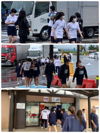 40〜50分後にはラフティング会場に到着します。到着すれば、体育館にて昼食です。