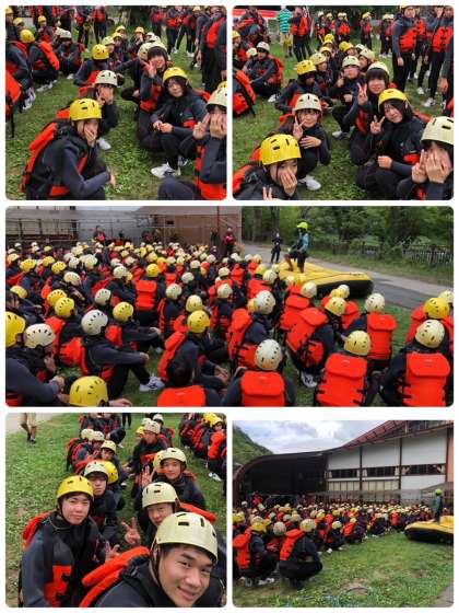 1組から順番にラフティングスタイルでの学級写真を撮影しました。上から順に、3−1〜3−5です。