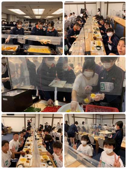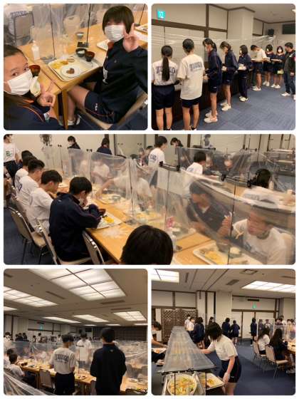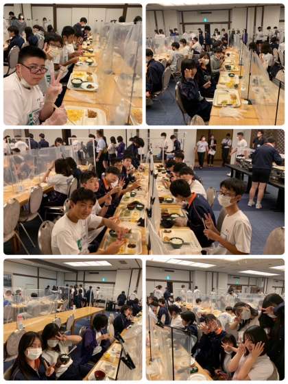 各クラス、揃った部屋から食事開始です。マナー違反をせず、食べ終わったらマスクをしていました。