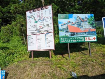 バスでの移動のたびに目にした、ホテルグリーンプラザ白馬まで、3.5kmの看板ともお別れです。2日間ありがとうございました。