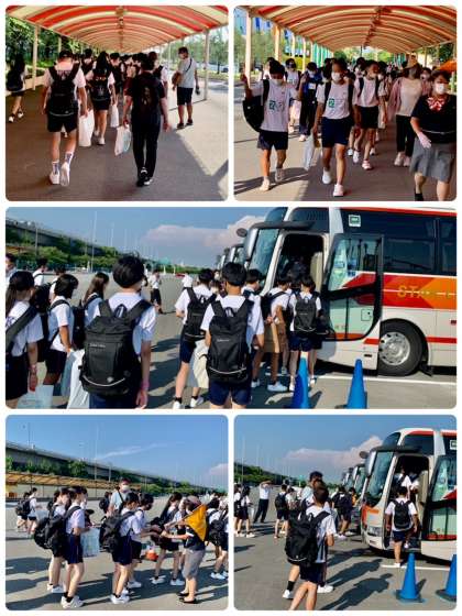1組から順に駐車場へ移動し、バスに乗車しました。これから瑞光中学校へ帰校します。