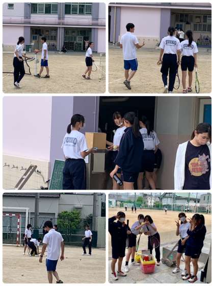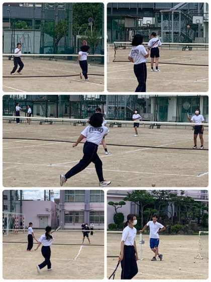 本日7月22日(金)は、明日の大阪市第1教育ブロック大会に向けて頑張っている、ソフトテニス部の練習を見学しました。