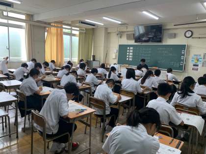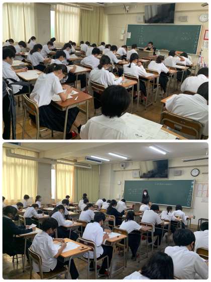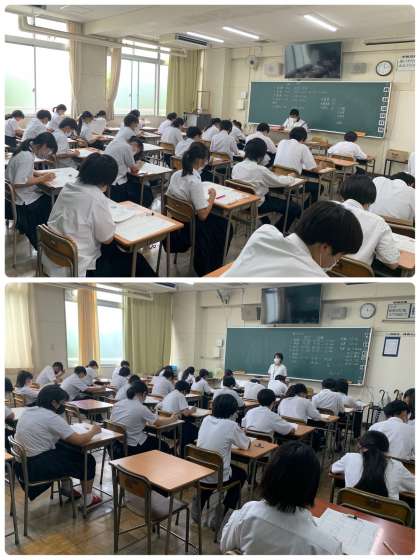 4限目の1年生実力テストの様子です。社会科テストでしたが、テストに真剣に向き合っている様子が伺えました。上から順に1、2、3、4、5組です。