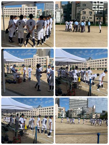 本日9月10日(土)は、大阪市中学校秋季総合体育大会 軟式野球の部 3回戦、対市岡中学校戦が市岡中学校グランドにて開催されました。