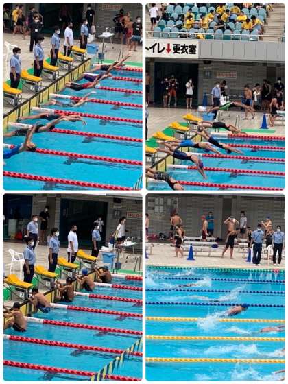 本日は100m自由形に3名出場、100m背泳ぎに2名出場、100mバタフライに1名出場しました。明日は100m平泳ぎに2名出場します。